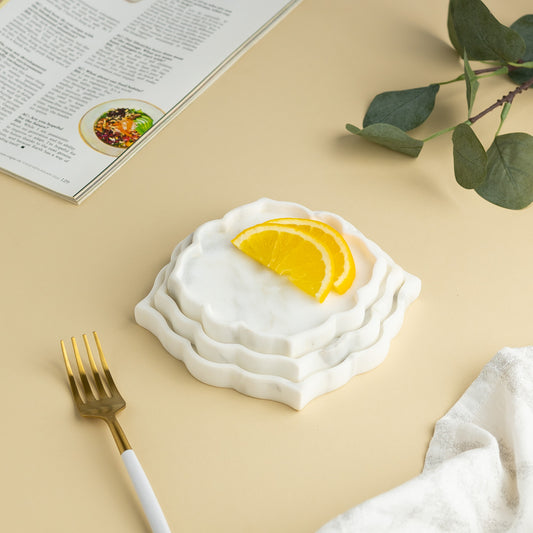 Introduce refined simplicity with our Triptych Trinket Tray, crafted from stunning white marble. Featuring three...