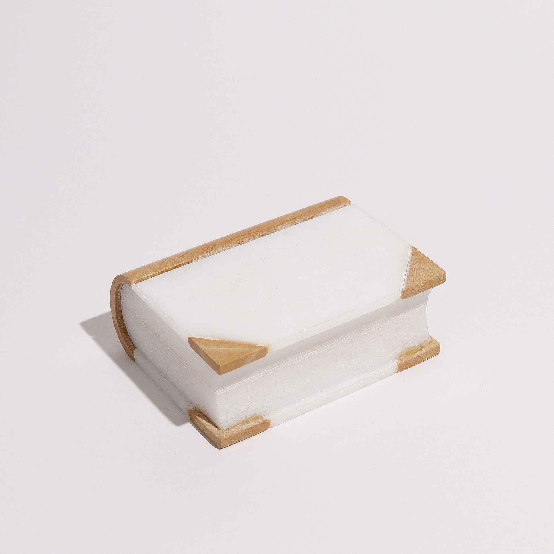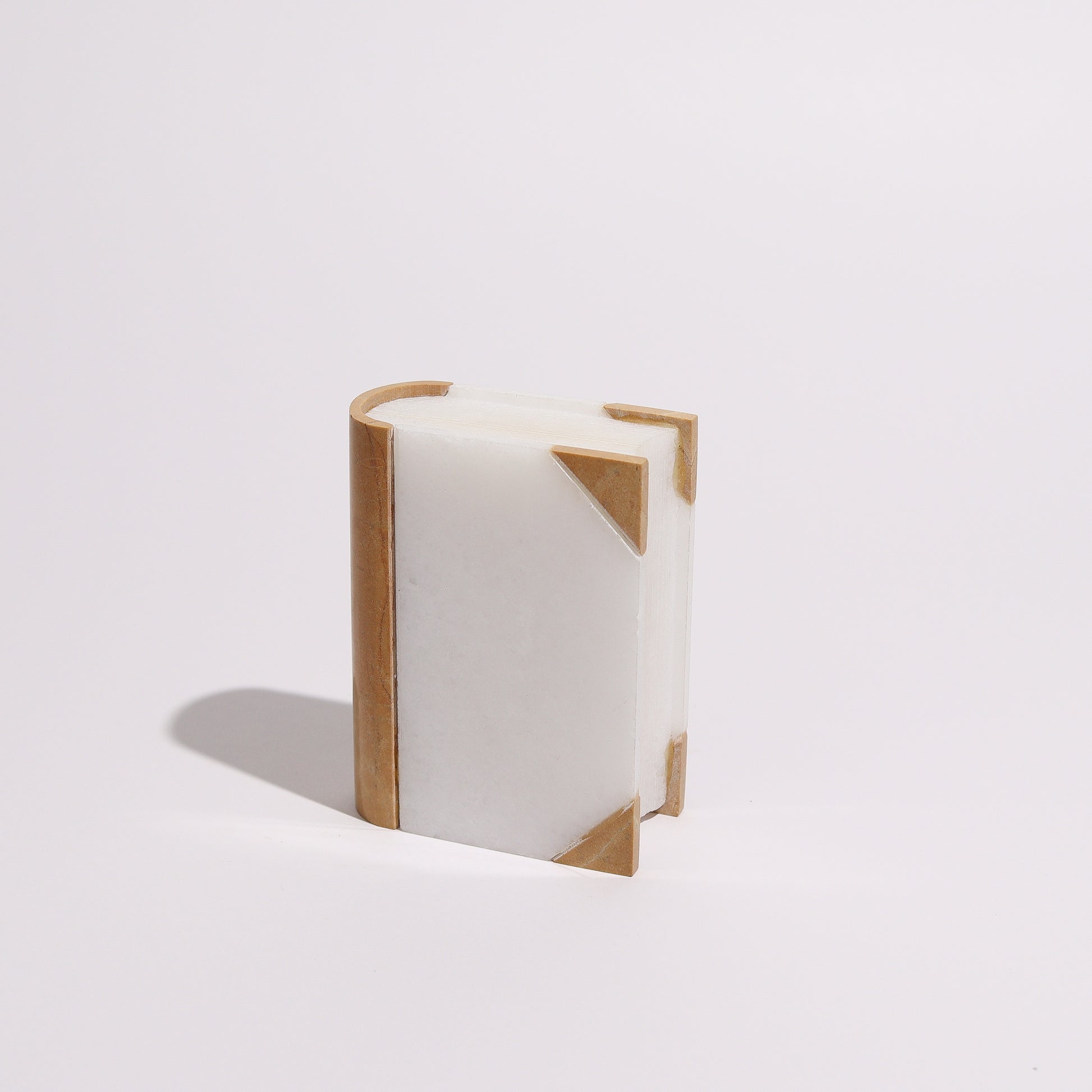 Enhance your desk or workspace with our elegant Carved White Marble and Brown Stone Book Paperweight. Shaped like a small book, this piece combines high-quality white and brown marble for a sophisticated and durable design. Perfect for organizing papers or as a decorative item, it adds a touch of classic charm to any space. Ideal as a thoughtful gift for book lovers and those who appreciate fine craftsmanship.