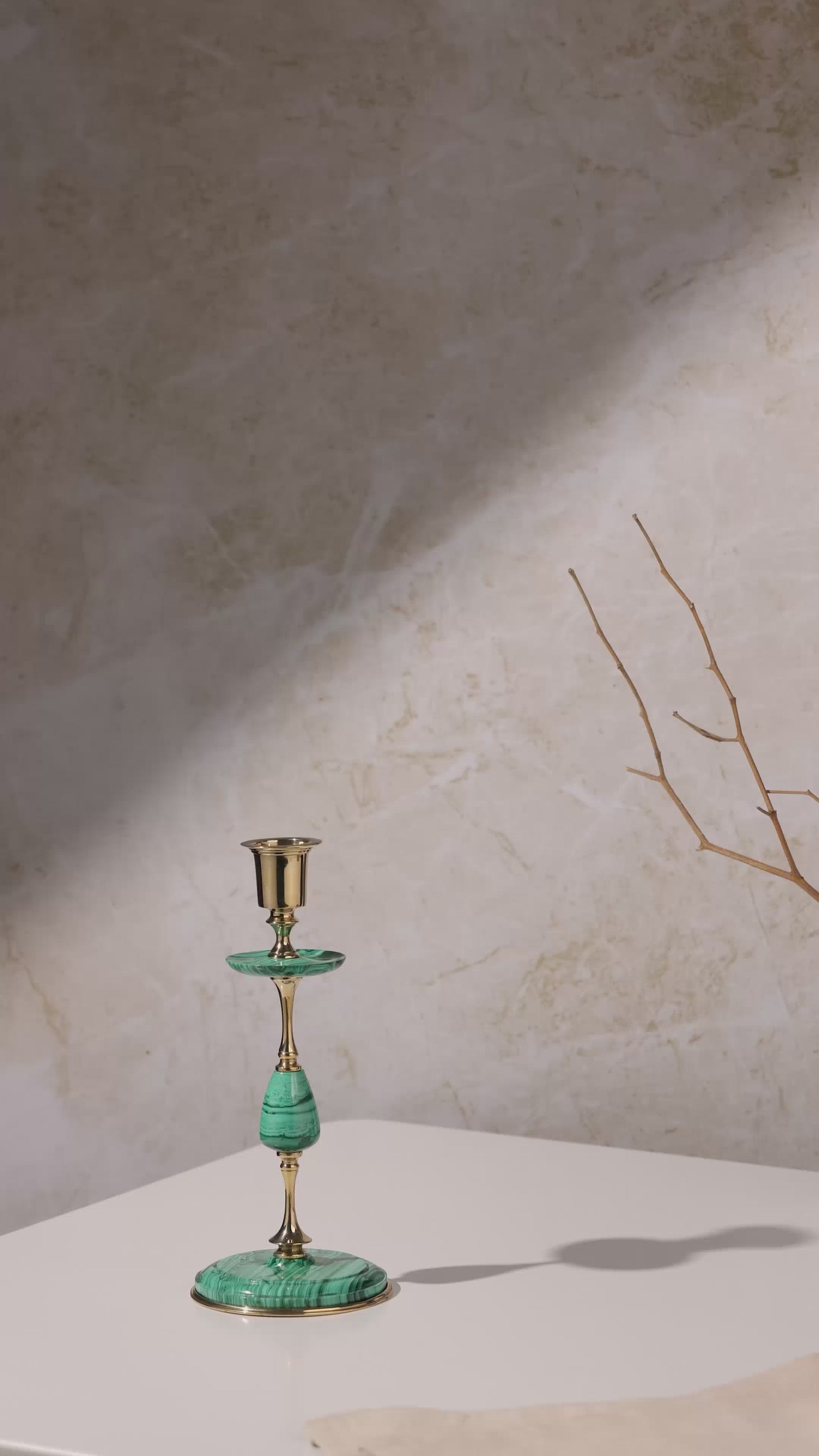Add a touch of opulence to your home with our handcrafted candlestand, meticulously crafted from solid Blue Lapis Lazuli sourced from Afghanistan and adorned with brass accents. This exquisite piece blends the deep, rich blue tones and intricate natural patterns of Lapis Lazuli with the timeless elegance of Brass, creating a captivating visual centerpiece for any room. Ideal for enhancing both modern and traditional décor styles, the candlestand not only serves as a functional lighting accessory but also showcases the inherent beauty and uniqueness of Lapis Lazuli, a natural semi-precious stone. Each candlestand is crafted with meticulous attention to detail, ensuring a luxurious and distinctive addition to your living space.