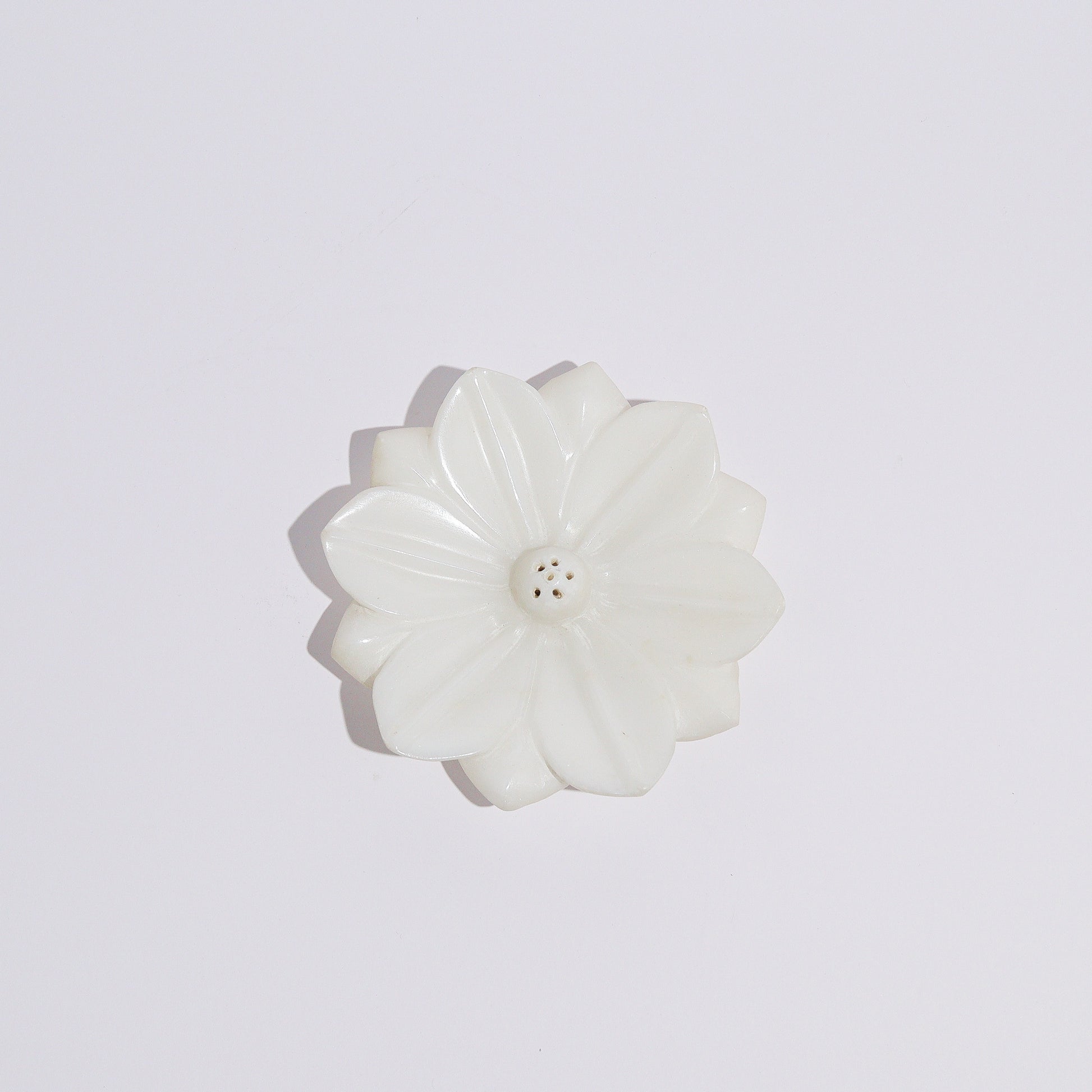 Carved from pristine Sangemarmar marble, this lotus seat embodies purity and divinity. The central bud serves as an elegant holder for your incense sticks, while the radiating petals create a serene, sacred presence in any space. A timeless piece that blends spiritual symbolism with fine craftsmanship.