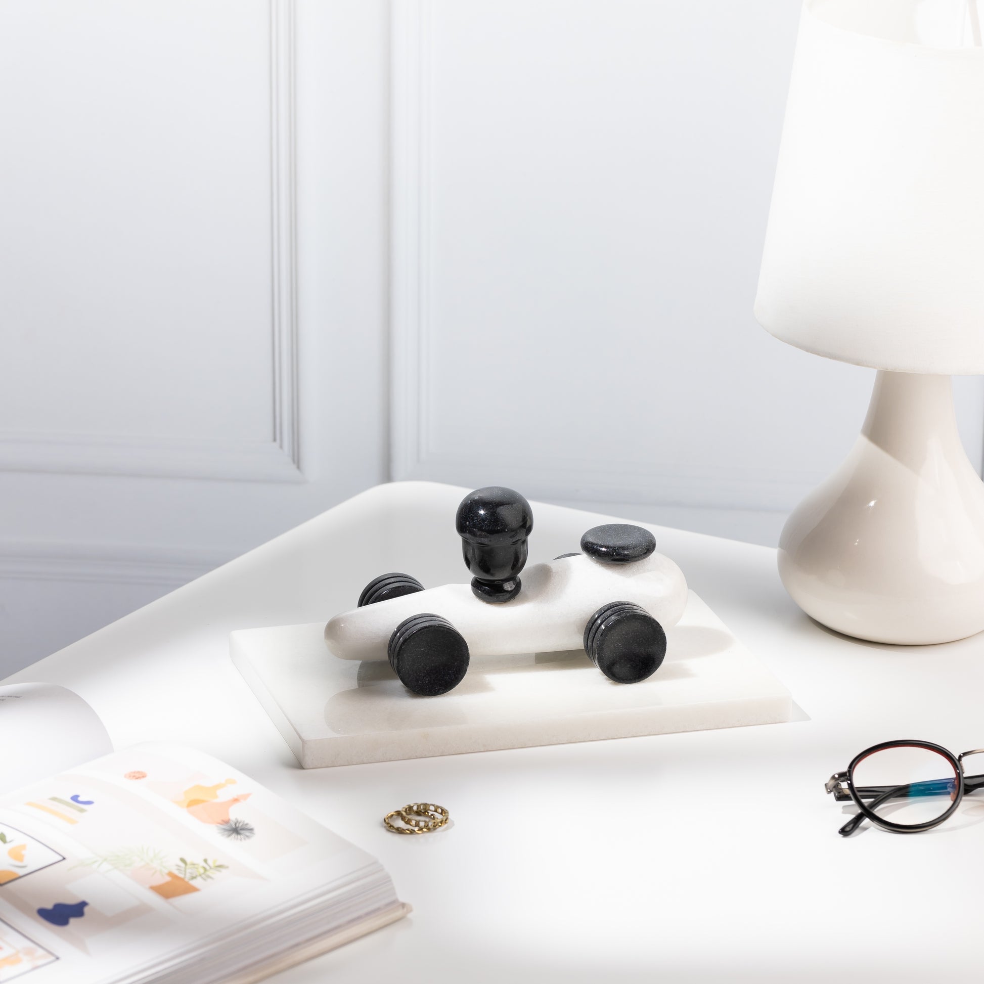 Introducing our exclusive Mini Car Sculpture, a unique addition to our collection of sculptures for children's rooms. Crafted entirely from premium solid white and black marble, this charming piece adds a touch of playful elegance to any space. Whether displayed in your child's room, a nursery, or a cozy corner of your home, this sculpture effortlessly blends youthful charm with timeless sophistication.